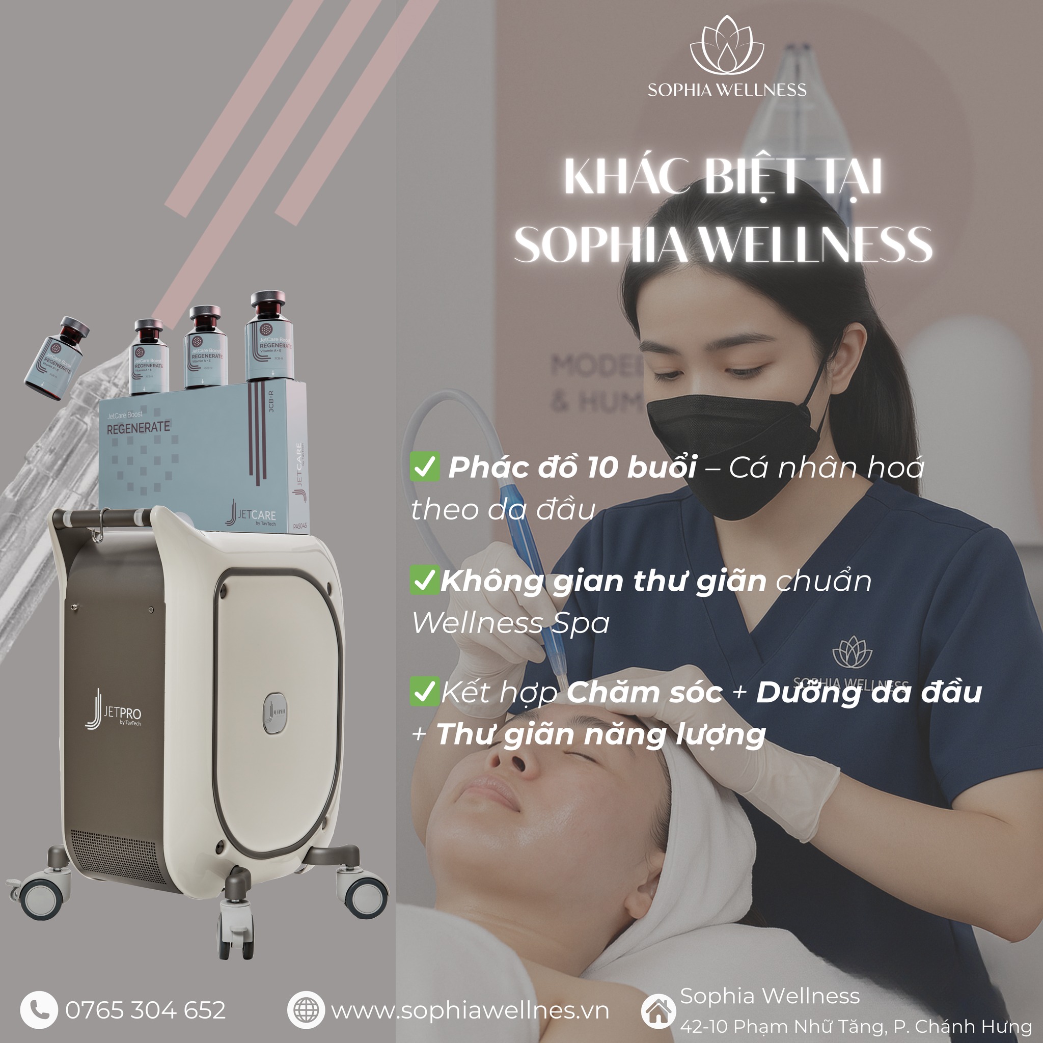 Chỉ có tại Sophia Wellness – nơi kết hợp chăm sóc hiện đại & hoạt chất chọn lọc mang đến sự khác biệt rõ rệt cho mái tóc & da đầu.