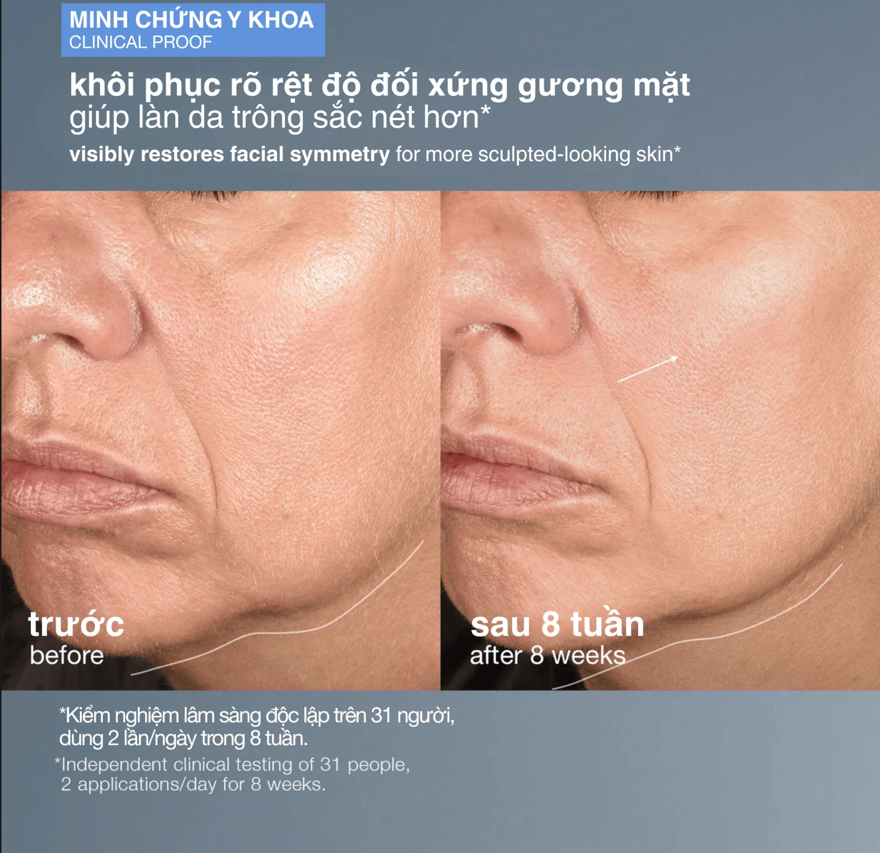 Bacillus Ferment được bioengineered mang lại hiệu quả nâng và tạo đường nét rõ rệt. Winged Kelp giúp tăng vẻ săn chắc của da, trong khi chiết xuất Rosewood tác động vào vùng xương hàm để định hình đường nét tự nhiên. Squalane và các loại dầu bionutrient củng cố hàng rào ẩm của da; hỗn hợp aromachology giúp cải thiện tâm trạng.